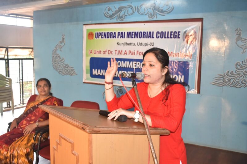 ಕಾಲೇಜಿನ ಹಳೆ ವಿದ್ಯಾರ್ಥಿನಿ ಹಾಗು ಹಿರಿಯ ಪ್ರಬಂಧಕಿ ಶ್ರೀಮತಿ ಆರತಿ ಕಾಮತ್ ವಿದ್ಯಾರ್ಥಿಗಳಿಗೆ ಪ್ರಾತ್ಯಕ್ಷಿಕೆ ಮೂಲಕ ಪ್ರಸ್ತುತ ಕಾಲಘಟ್ಟದ ಆದ್ಯತೆಗಳ ಬಗೆಗೆ ಮಾಹಿತಿ ನೀಡಿದರು. ಕಾಲೇಜಿನ ಪ್ರಾಚಾರ್ಯೆ ಶ್ರೀಮತಿ ಆಶಾ ಕುಮಾರಿ ಅಧ್ಯಕ್ಷತೆ ವಹಿಸಿದ್ದರು.