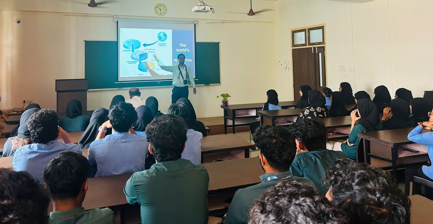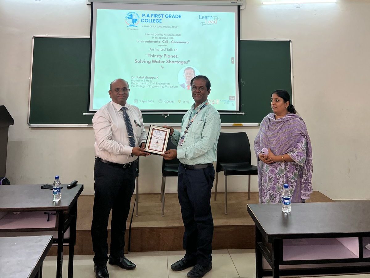 Mangalore, 7 April 2025: Nature club – Greenaura, in collaboration with IQAC, organized an invited talk on “Thirsty Planet: Solving Water Shortages” on the occasion of World Water Day. The event featured Dr. Palakshappa K, Professor & Head, Department of Civil Engineering, P.A. College of Engineering, Mangalore, as the keynote speaker.